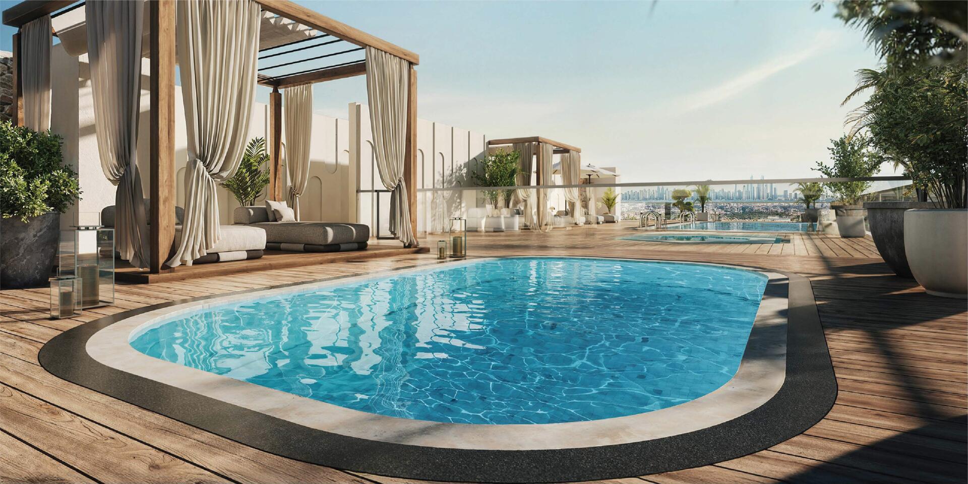 An exclusive collection of 108 residences in Liwan An exclusive collection of 108 residences in Liwan, featuring 1 BHK Elite and 2.5 BHK Panorama apartments, fully furnished and thoughtfully designed with a modern closed-kitchen concept. Each home is crafted for elevated living, blending timeless architectural elegance with rooftop wellness spaces, panoramic views and a serene community lifestyle, adjacent to the sports arena.
